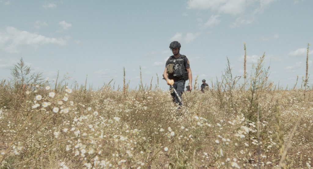 Alisa: Nicht viel, vielleicht insgesamt 20 Stunden in vier Monaten. Ich musste mich manchmal dazu zwingen. Die meiste Zeit war meine Kamera in meiner Tasche. Ich filmte mehr für die eigene Erinnerung, für das Familienarchiv, für meinen Sohn. Die Idee, einen Film zu machen, kam viel später. Manchmal habe ich nur Bäume oder Felder gefilmt. Im März 2022 beschützten wir Kiew vor den russischen Soldaten und nachdem diese geflohen waren, gingen wir in die Region von Charkiw. Wir starteten im Industriegebiet vor Charkiw und gingen von dort bis zur russischen Grenze. Irgendwann saßen wir im Wald fest und sollten die letzten Orte befreien, doch die Russen drängten uns zurück. Als immer mehr meiner Waffenbrüder getötet wurden, wollte ich auch an sie erinnern.